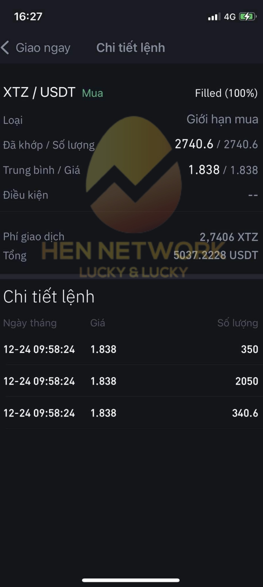 Giá mua 1.838, tổng cộng 5,037 USDT
