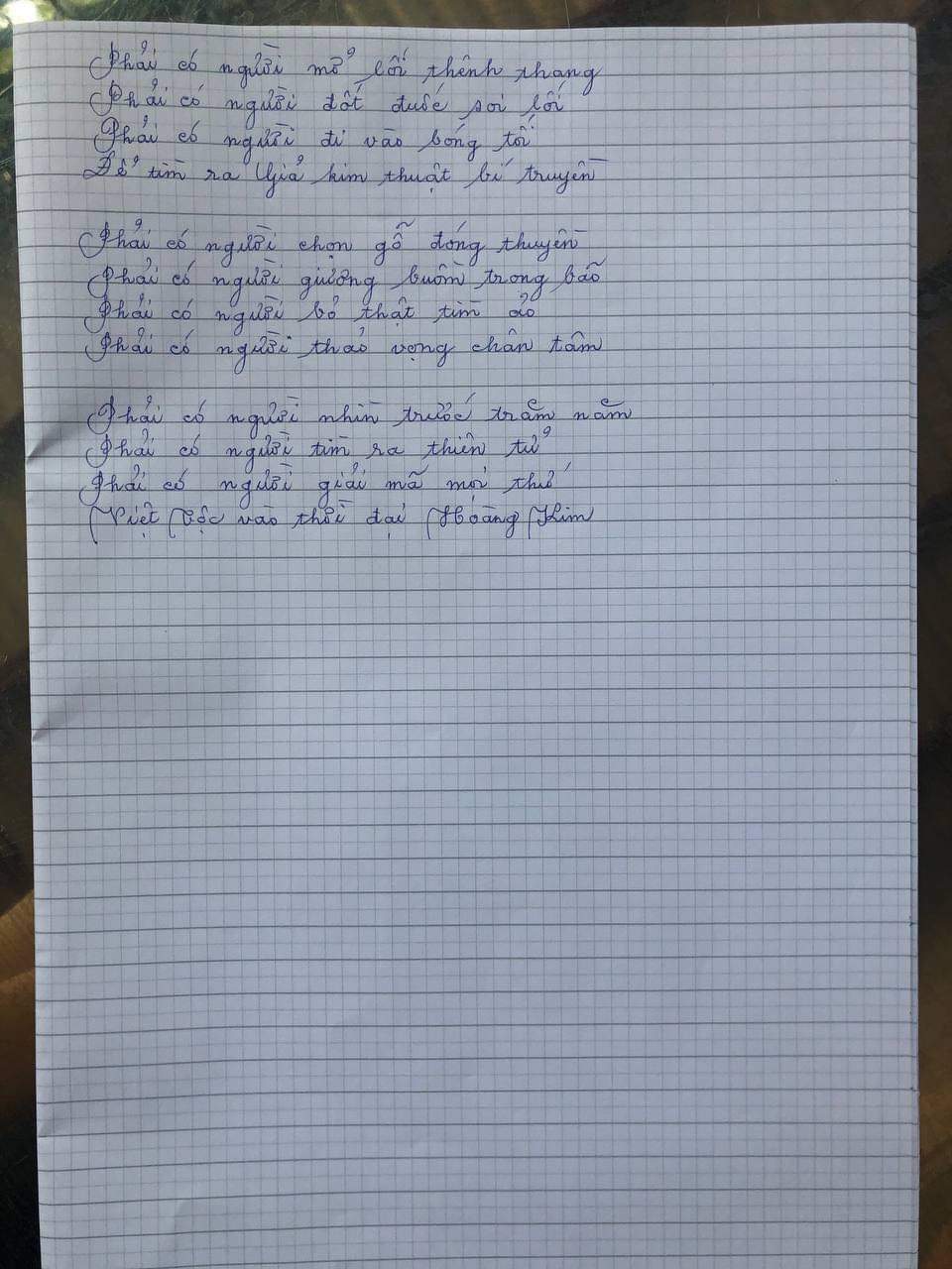 Hôm nay mình phải làm một bài thơ để ghi nhớ.