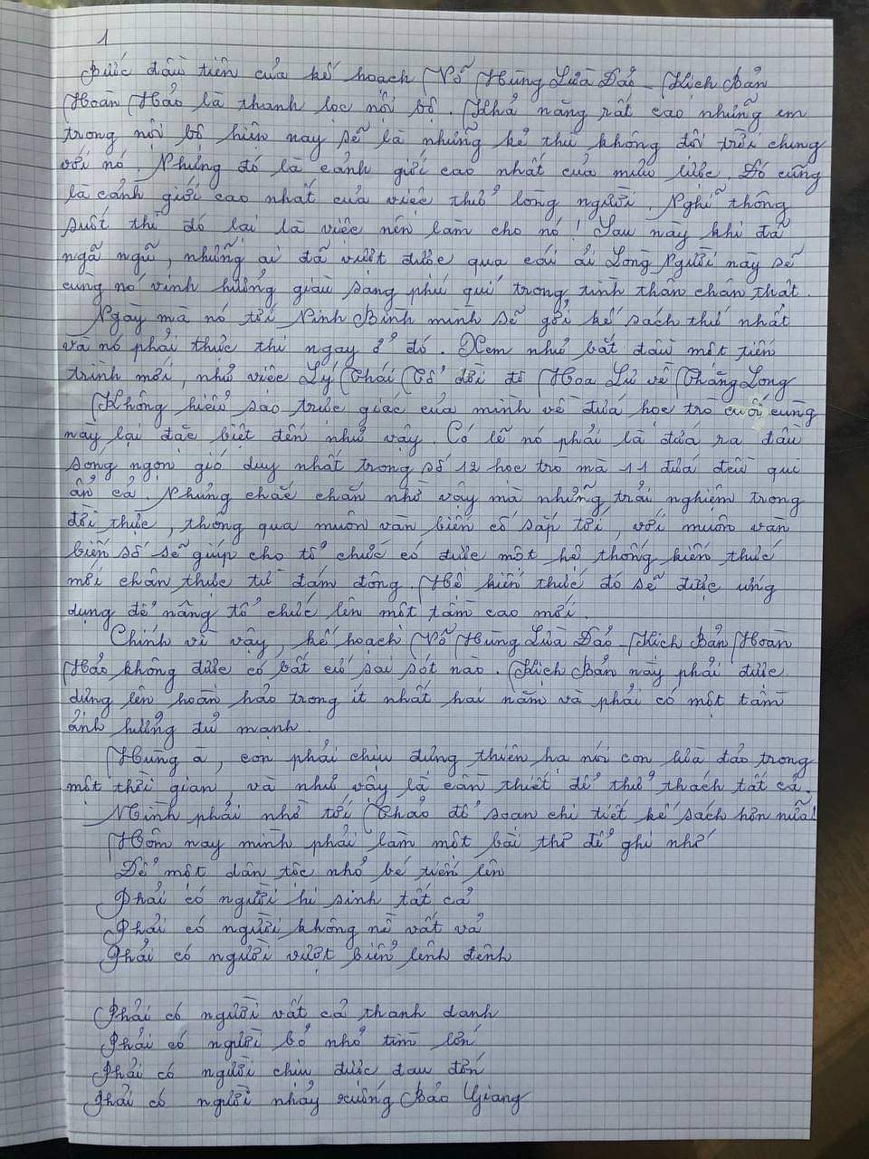 Ngày mà nó tới Ninh Bình mình sẽ gởi kế sách thứ nhất và nó phải thực thi ngay ở đó. Xem như bắt đầu một tiến trình mới, như việc Lý Thái Tổ dời đô Hoa Lư về Thăng Long.
